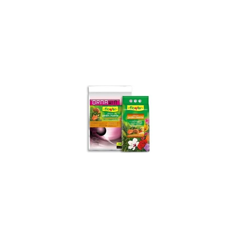 ABONO JARDIN Y HUERTA FLOWER es un abono órgano-mineral granulado completo con un equilibrio en nutrientes Nitrógeno-Fósforo-Potasio (NPK) pensado para el abonado en general de todo tipo de plantas de jardín, y césped.