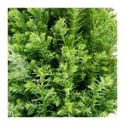 De porte cónico regular, con muchos troncos, y compacto. Sus ramas crecen verticalmente, con un follaje muy denso de color azul verdoso. Muy utilizado para composiciones, en rocallas, jardineras, terrazas y como ejemplar aislado.