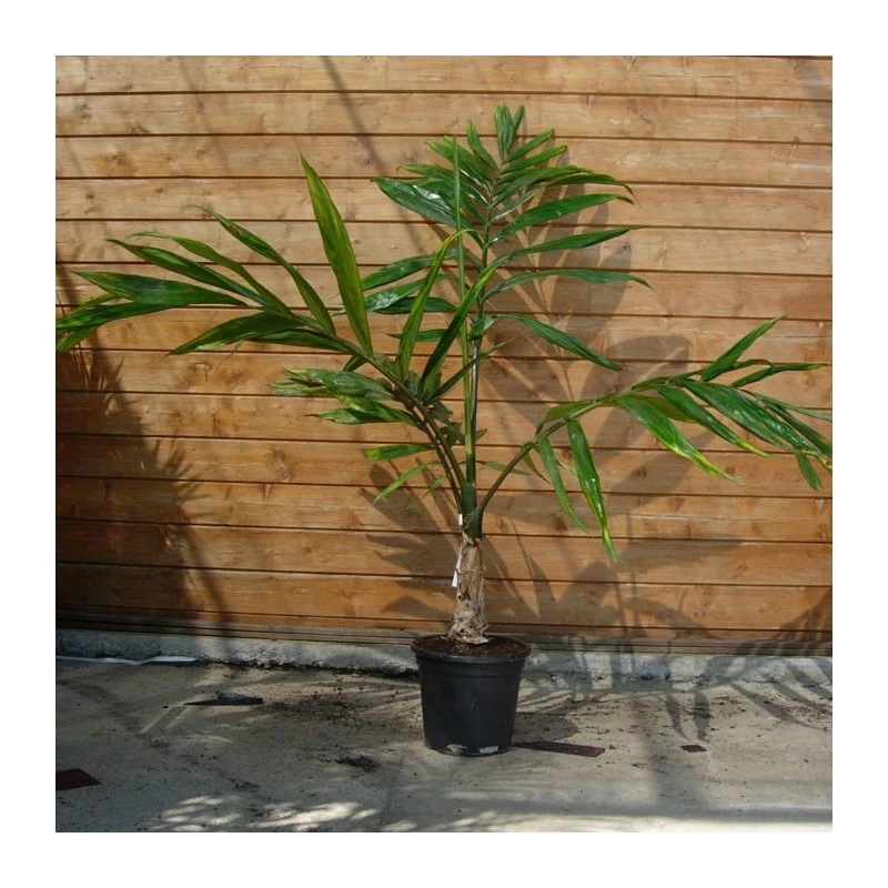 Es una palmera decorativa con un solo tronco que puede llegar a alcanzar los 20 metros de altura y hasta casi 30 centímetros de diámetro.