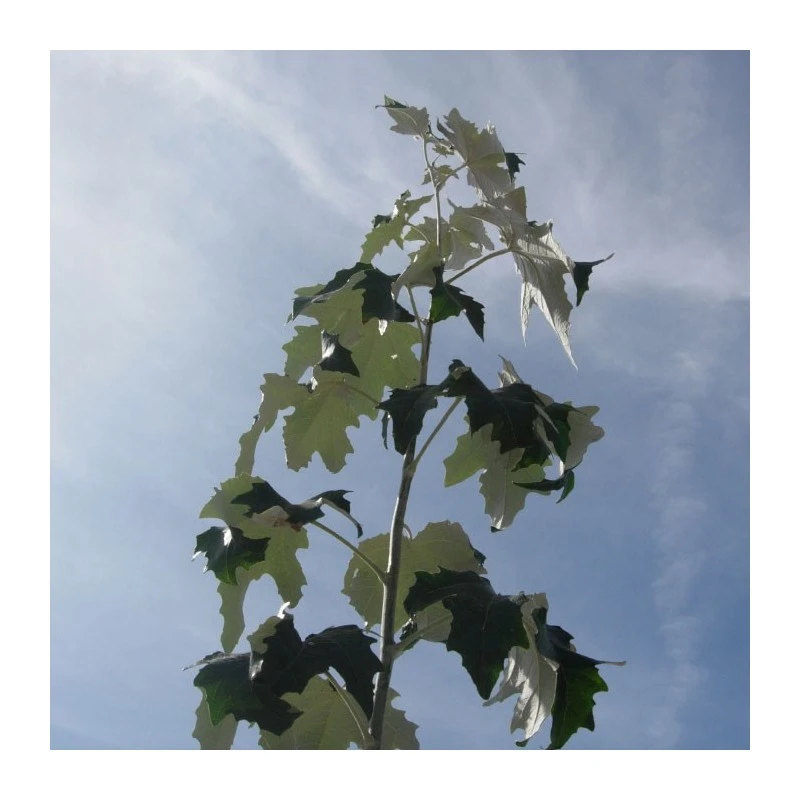 Árbol de rapidísimo crecimiento, alcanza una altura considerable. Tiene un porte muy elegante por su esbelta silueta, muy bonito por sus hojas con el envés planteadas.