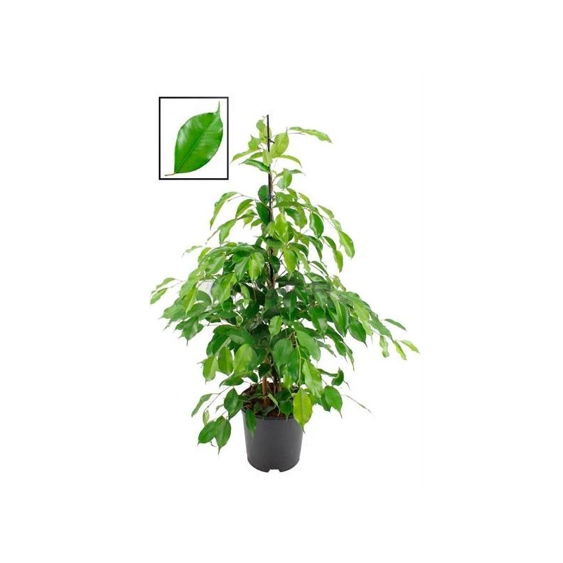 Los ficus benjamina exótica se diferencian de los ficus benjamina por su color verde claro brillante y hoja un poco más grande que el ficus bensjamina.