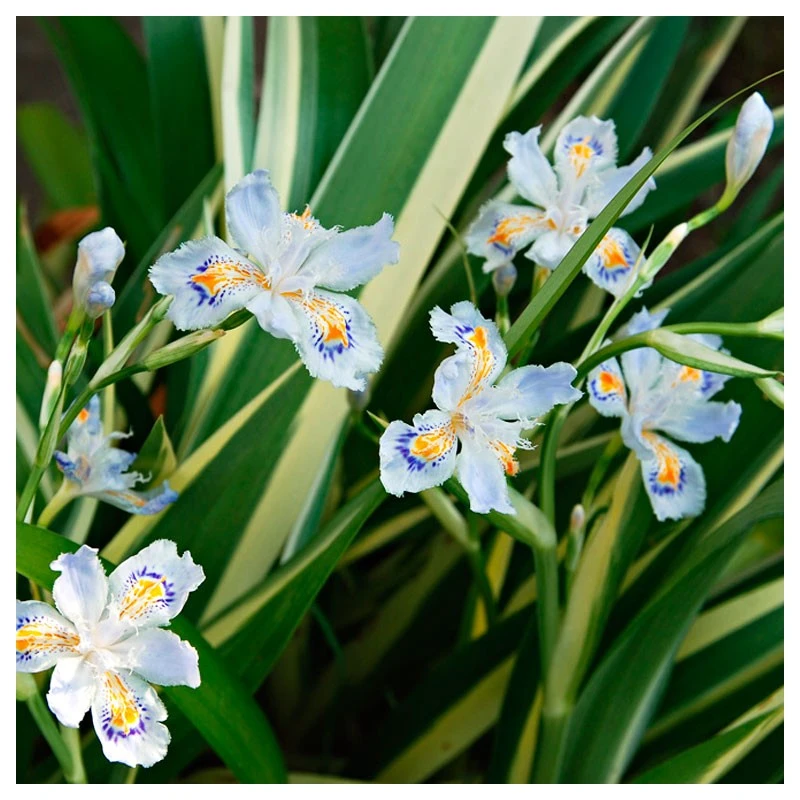 Iris tectorum cruella, sus flores son muy atracticvas y fragantes, durante todo el año tendrás unas hermosas flores de color azul, blanco y color miel.