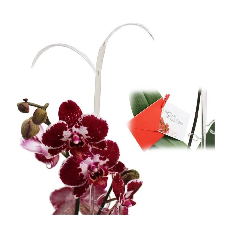 Orquídea phalaenopsis + tutor decorativo + tarjeta de felicitación + arreglo.
