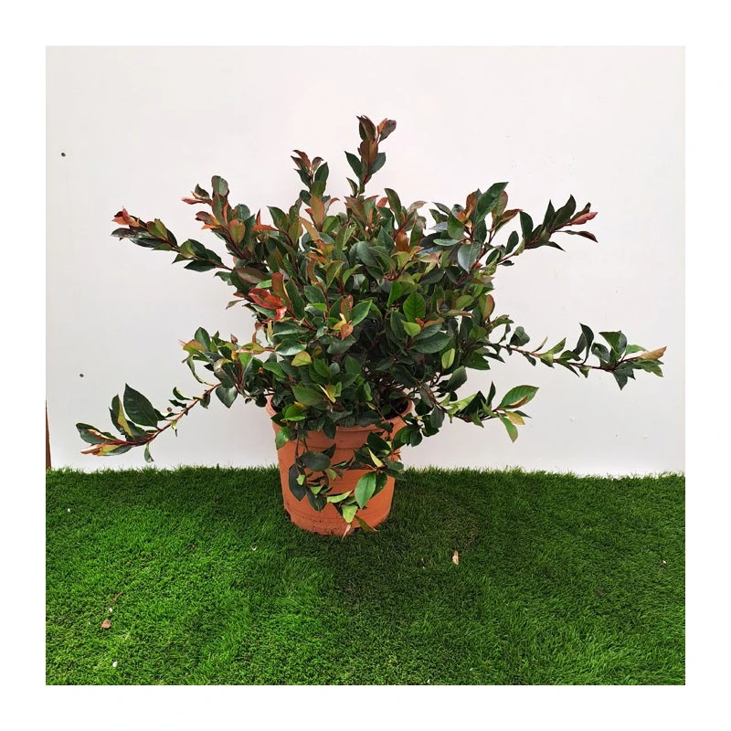 Arbusto muy ornamental con hojas nuevas de color rojo que van pasando a verde brillante.
