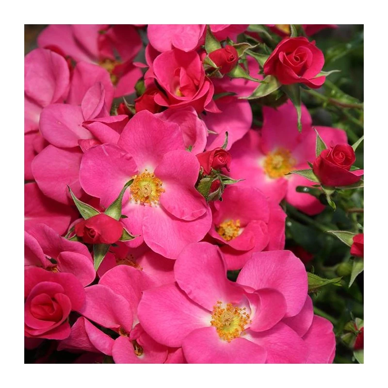 Rosal de porte arbustivo alto, ideal para macizos, setos y grupos aislados.