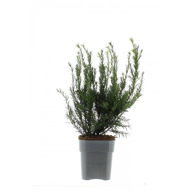 Conífera perenne de crecimiento lento. Las hojas son lisas verdes que brotan en espiral y parecen formar dos hileras.